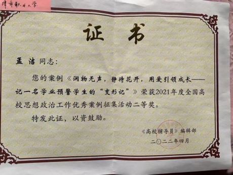 我校辅导员获全国高校思政工作优秀案例二等奖
